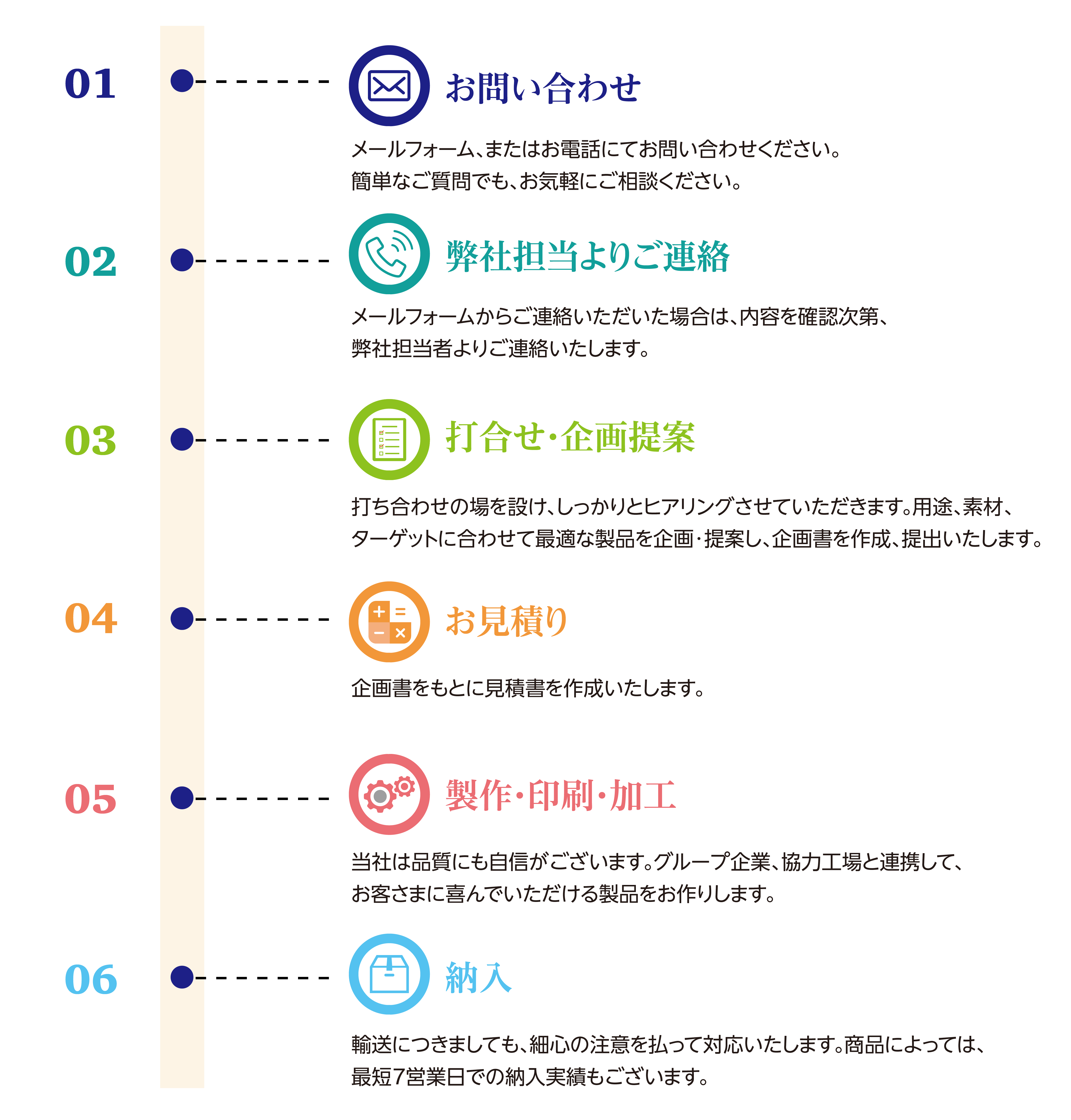 サンラベルでは、グループ企業・協力工場と連携することで、これまでお客さまが個別に購入・依頼されていた案件を一括して承ります。成形技術、梱包資材、アッセンブリーなど、あらゆる工程を統括して当社にご依頼いただければ、さらなる業務効率の改善、コストの削減に繋がります。